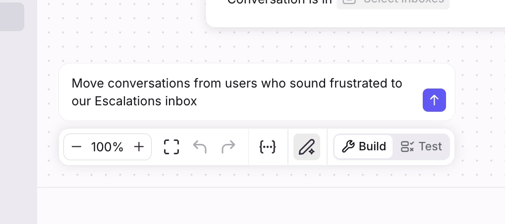 - "Move conversations from users who sound frustrated to our Escalations inbox" (this one uses an AI node under the hood)