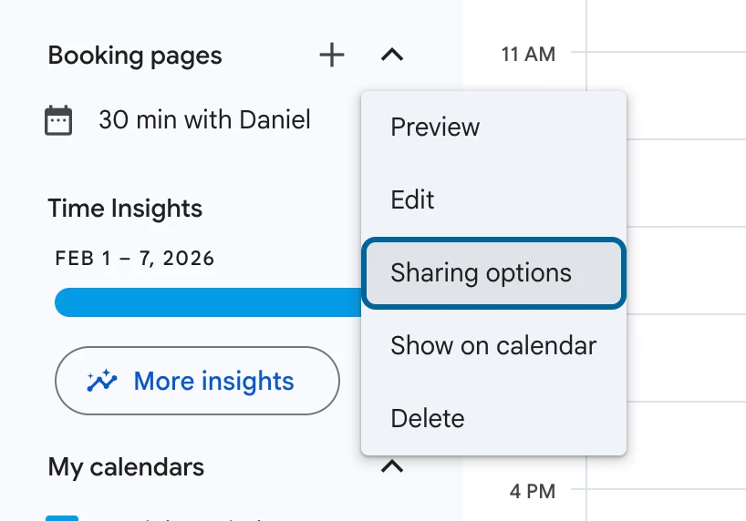 Step 1: From your Booking Page Sharing Options copy the src url form the Website embed tab (Inline Booking page):