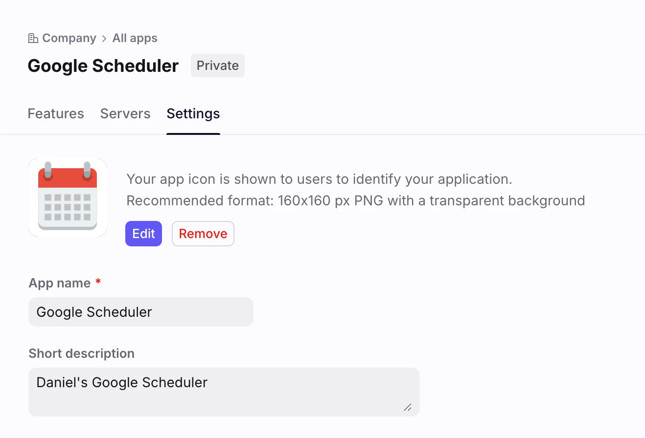 Step 2: Create a new App, add a name and an Icon you can easily recognize: