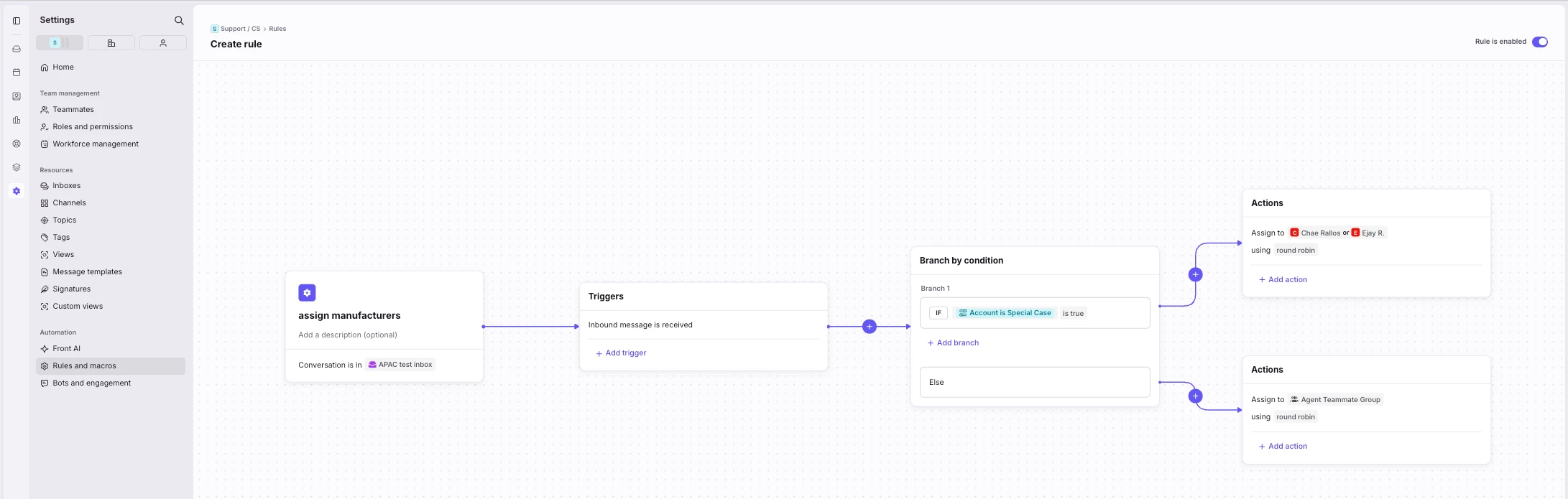 My Question: Is it better to create a completely separate "Team/Group" in Front just for that one product line? Or is there a way to write a Rule that says "Round Robin to Everyone EXCEPT Person A and Person B" if the email contains a specific keyword?