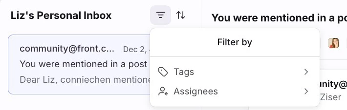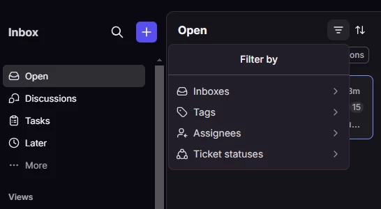 The next improvement we’re making simplifies the process of applying or removing filters on your conversation list by utilizing hover interactions and pills. We’re also adding in conversation type filters, so you’re still able to split out tasks and discussions as needed.