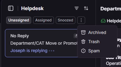 I think it would be nice if each tab had an icon and we could choose to show full text labels or icons only. Maybe an open envelop for Unassigned, an envelope with a person icon for Assigned, the clock icon for Snoozed and then the normal icons already used for Archived, Trach and Spam.