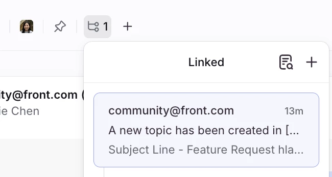 Is it possible to add/connect internal conversations about a company to the conversation history in Front?